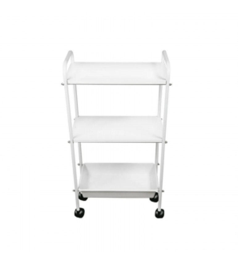O Carrinho Auxiliar é fabricado em material cromado e resistente. Contém uma bandeja plástica removível e um tampão de fórmica para ser utilizado como suporte para qualquer aparelho.